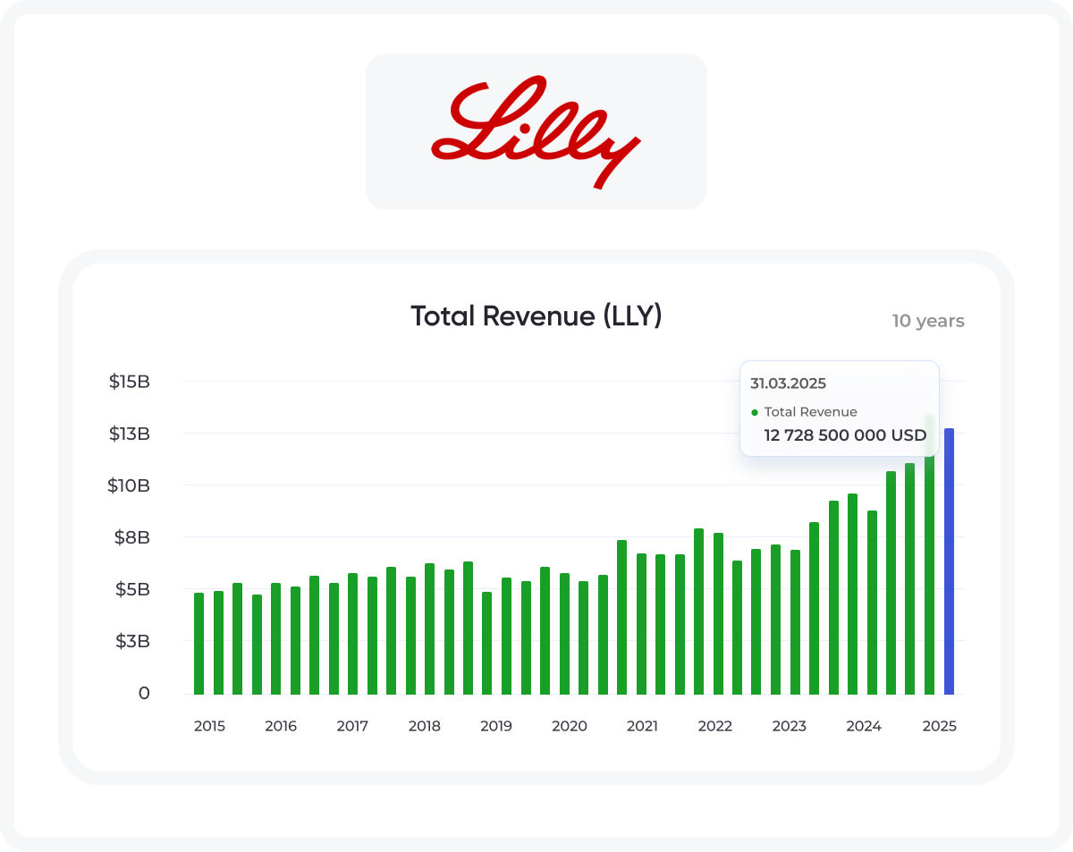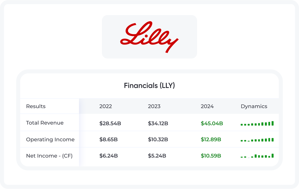 Eli Lilly (NYSE: LLY) is one of the world's largest pharmaceutical companies, specializing in the development and production of innovative drugs for diabetes, obesity, oncology, neurological, and immunological diseases.