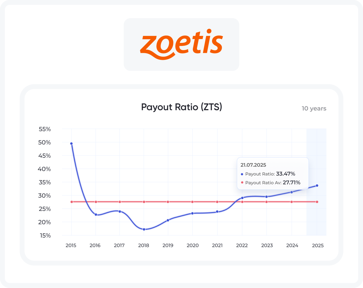 Zoetis has established itself as a reliable dividend grower, with 11 consecutive years of dividend increases and a low payout ratio of ~32%, reflecting its ability to sustain and raise payouts while reinvesting in growth. Key highlights: