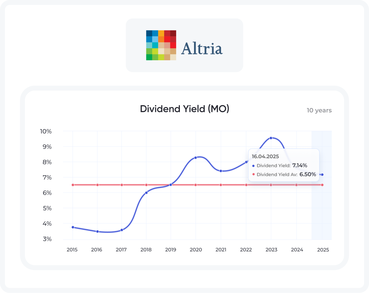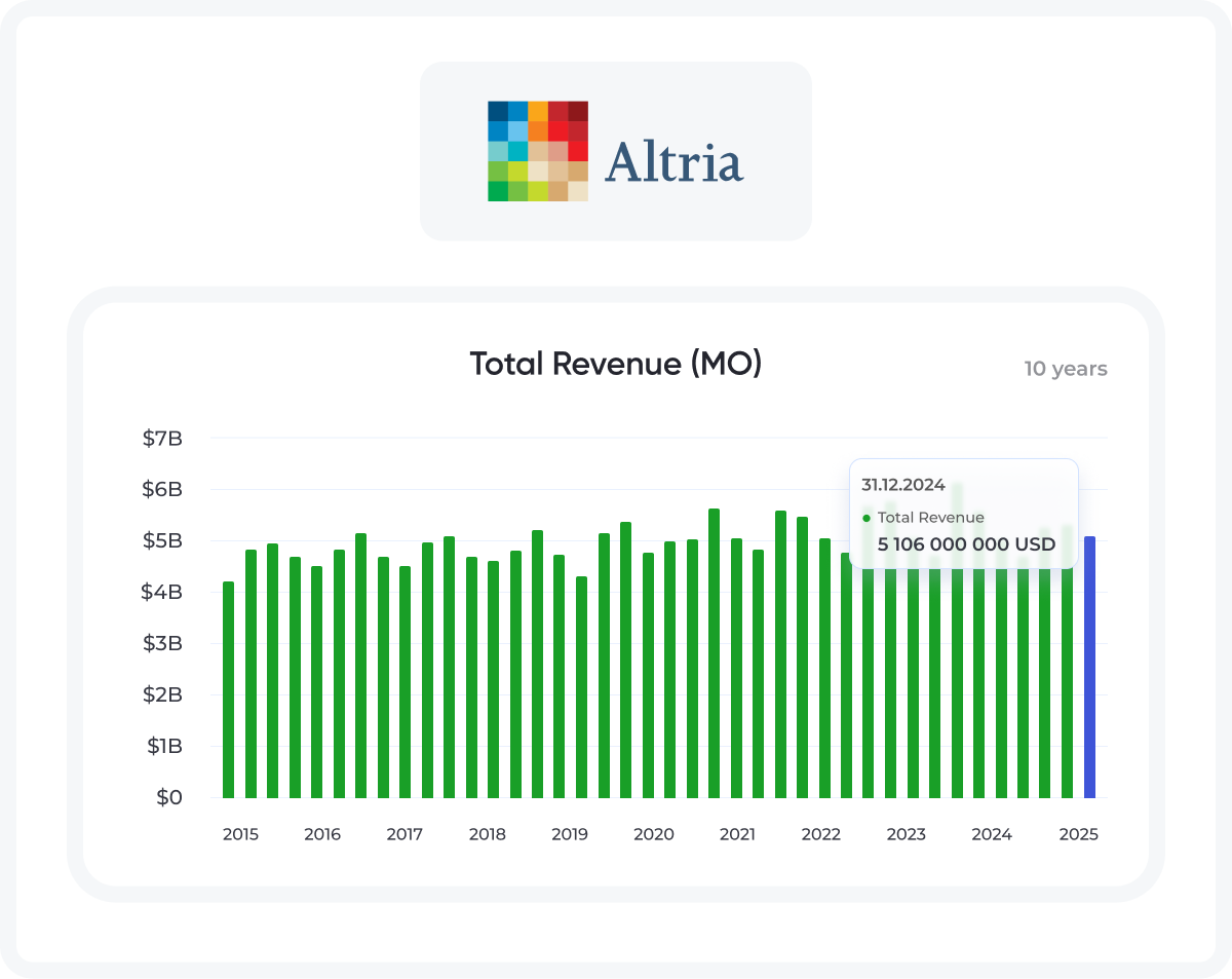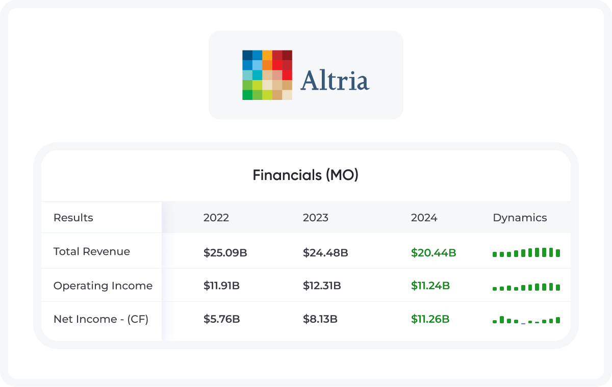 The company operates primarily in the United States, distributing its products through wholesalers and large retail chains. Founded in 1822, Altria is headquartered in Richmond, Virginia. It is considered financially stable and profitable, showing consistent growth and offering an attractive dividend yield.