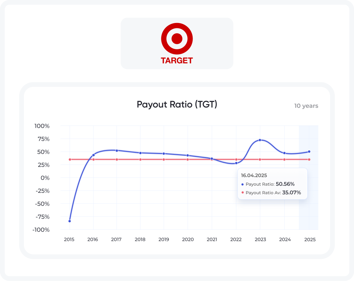 Target’s dedication to rewarding shareholders is evident in its 50+ consecutive years of dividend growth, backed by a payout ratio of 50.34%. The company’s dividend history is not only consistent but also robust, with the potential for double-digit dividend yield on cost over the next 10 years, estimated at 10.99%. Target’s commitment to dividends makes it a reliable investment for long-term income-seeking investors.