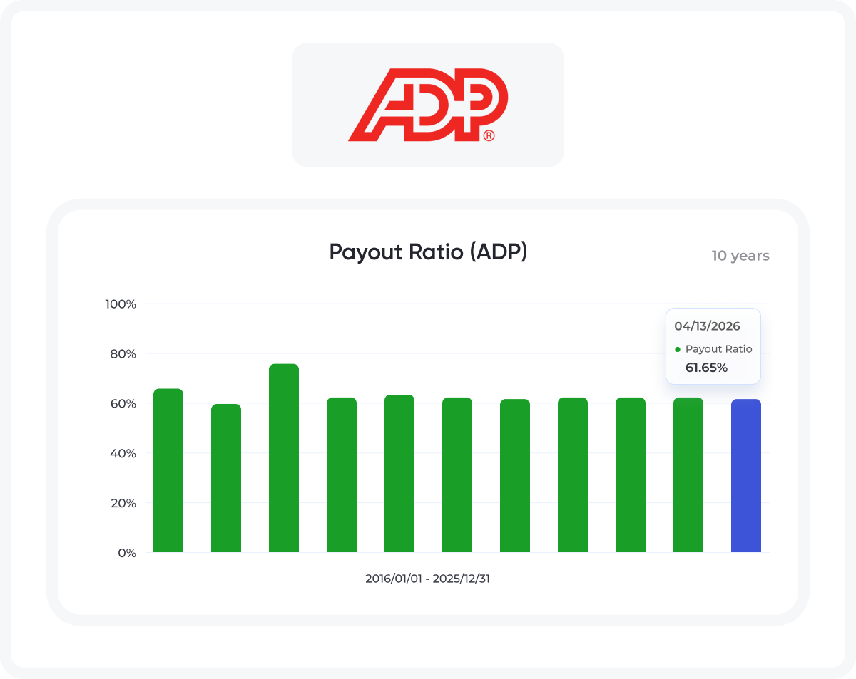 ADP is paying out 61.65% of its earnings as dividends — a moderate level, but still worth checking for sustainability. At this payout ratio, the company isn’t relying on debt or cash reserves to cover dividends.