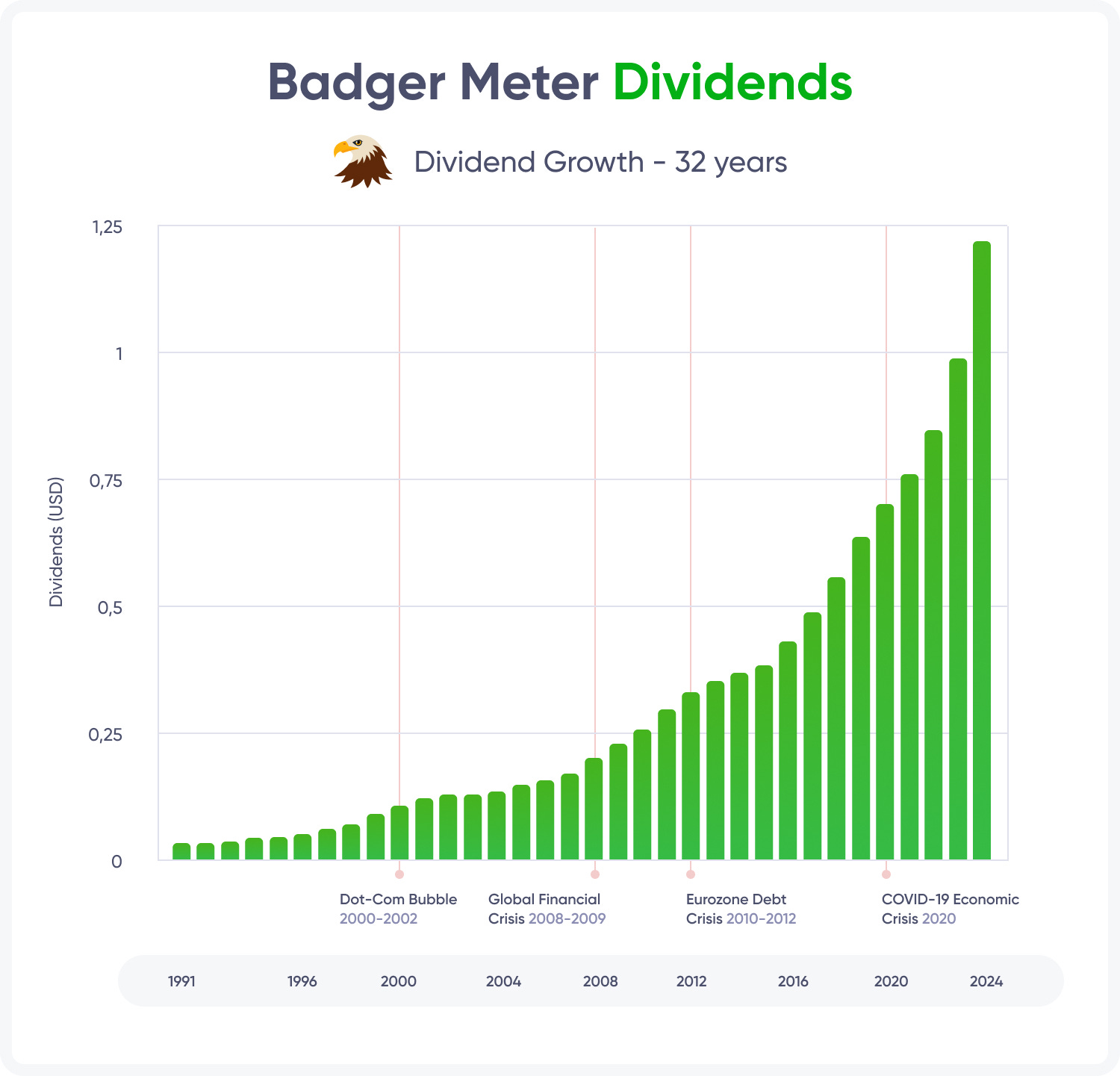 Take Badger Meter. They make the meters and software that track water use and leaks for homes, factories, and cities. Not glamorous — but essential. And essential businesses tend to keep paying.