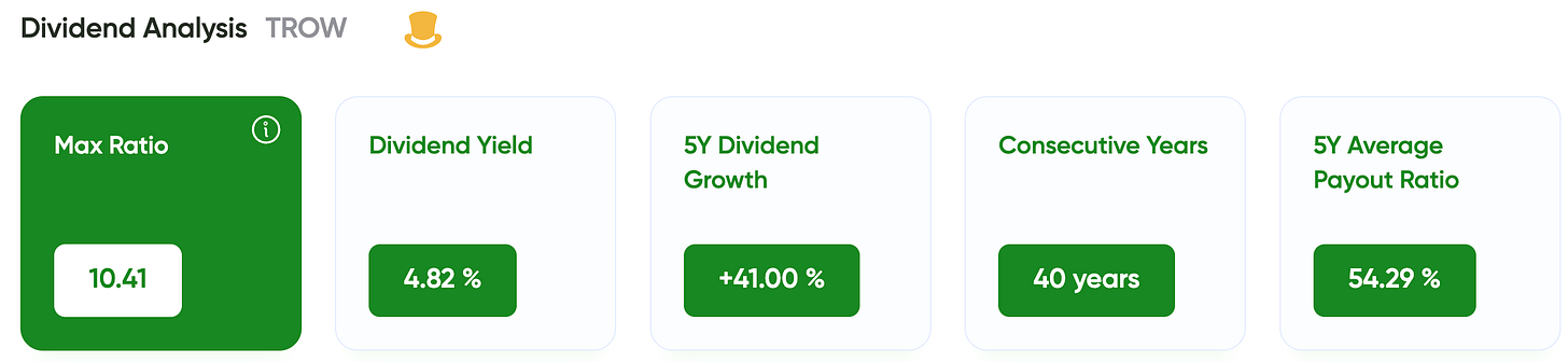With a MaxRatio above 10, TROW clearly sits in the Income Eagle category.