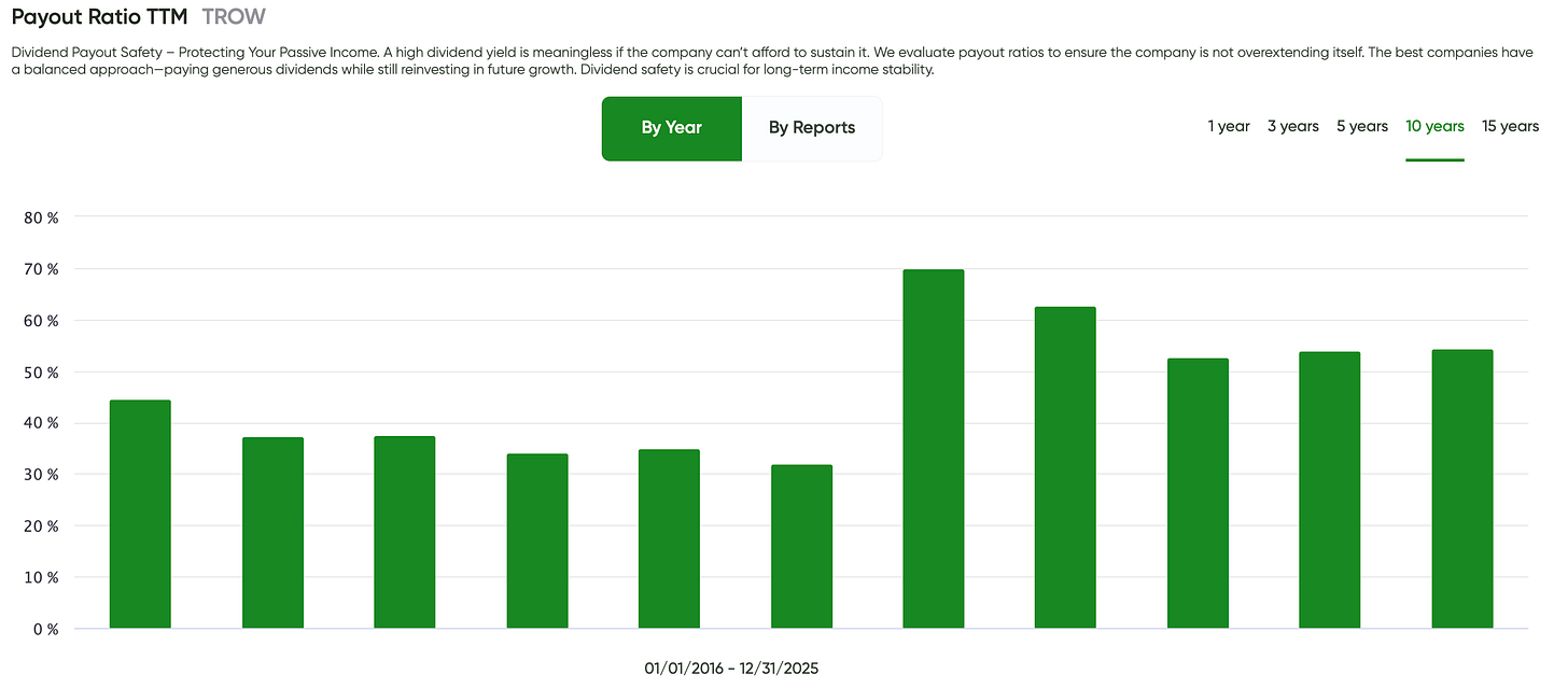 That alone places TROW in a relatively small group of asset managers with true dividend discipline. A few key points for income investors: