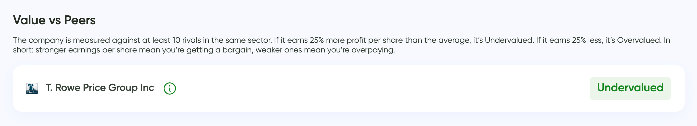 In simple terms, the market is pricing TROW below what its earnings power suggests compared to similar companies in the same sector.