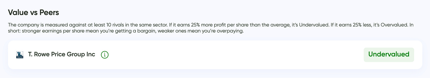 🟢 According to the MaxDividends App, T. Rowe Price Group (TROW) is Undervalued vs. its peers.