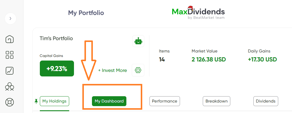 Open the app (or the web version — whatever you prefer). Inside your portfolio, you’ll now see a tab called My Dashboard.