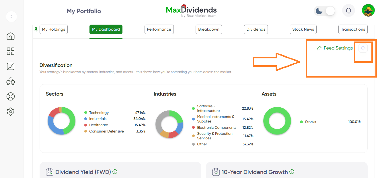 One Place. The Metrics You Care About. Customize Your MaxDividends Dashboard.