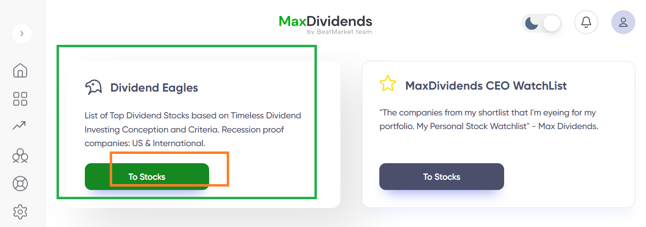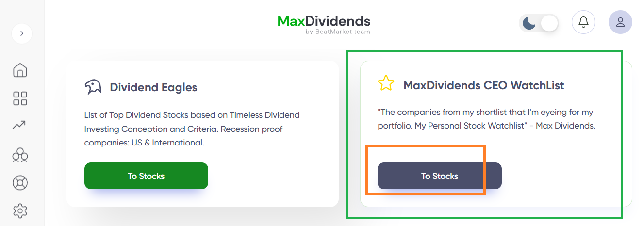 The Dividend Eagles that I personally select are now also available in the app under MaxDividends CEO Watchlist.