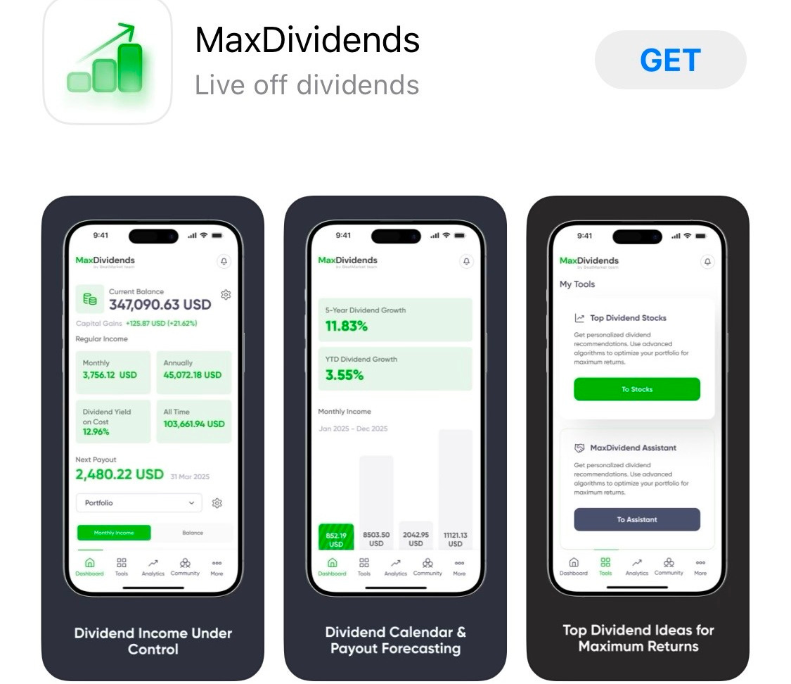 At MaxDividends, we know dividend investors don’t have time to mess around. That’s why we built a rock-solid dividend app that keeps you dialed in to your dividend journey—anytime, anywhere.