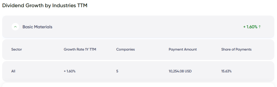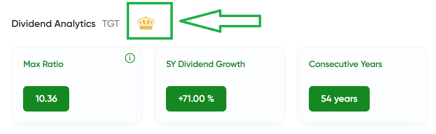 In the Analytics section, you’ll now see special badges for companies that consistently raise dividends year after year: