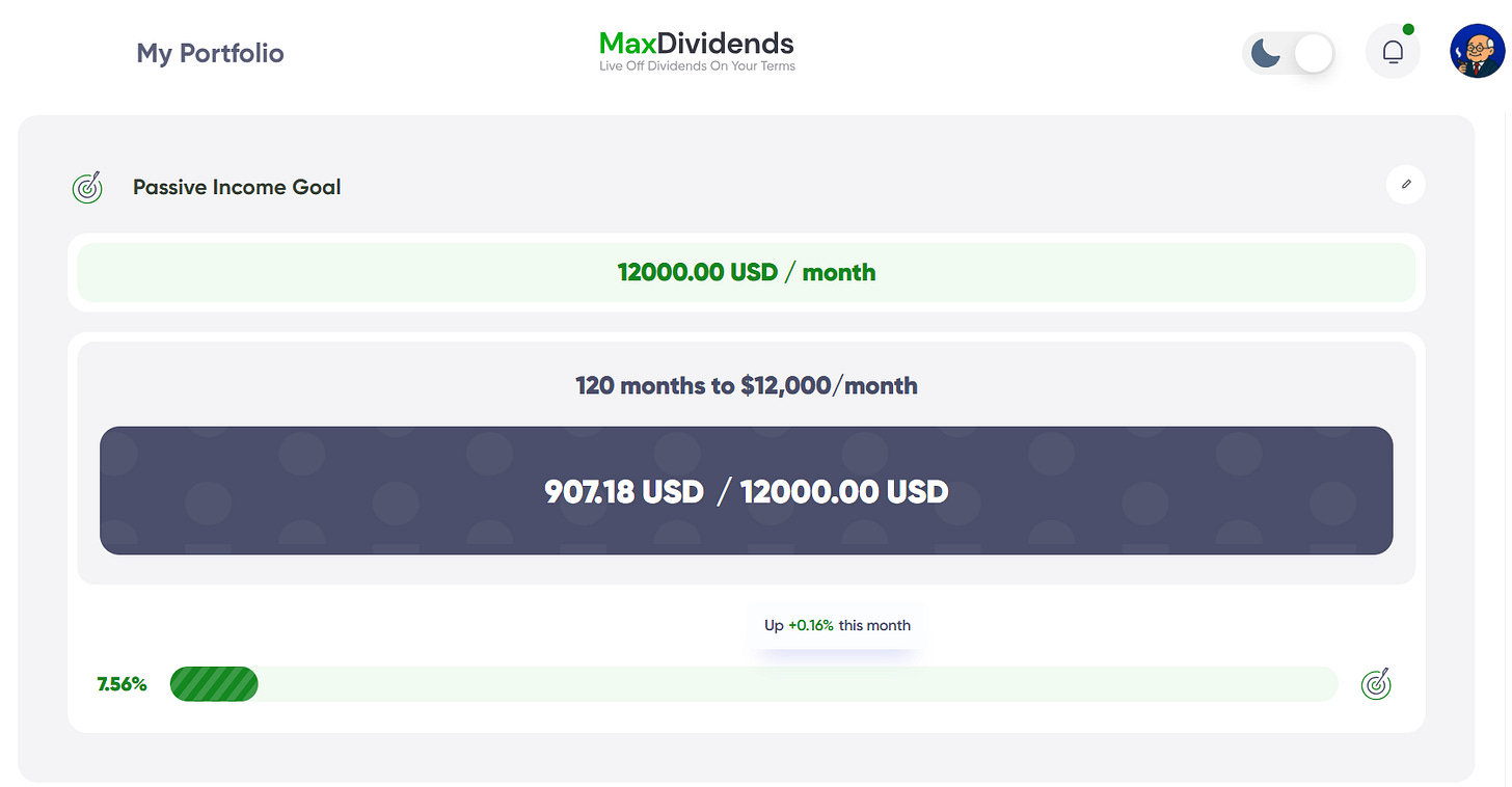 All of this is tracked inside the MaxDividends App — my roadmap and compass. It shows payouts, raises, and exact progress toward the $12K finish line.