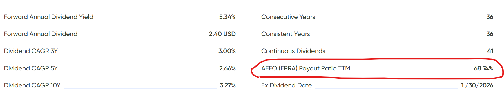 Over the next two weeks we’ll continue filling the database so the metric becomes available for all REITs in the MaxDividends App.