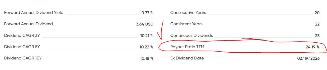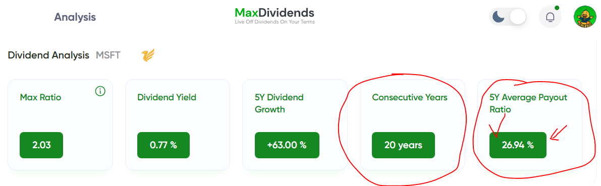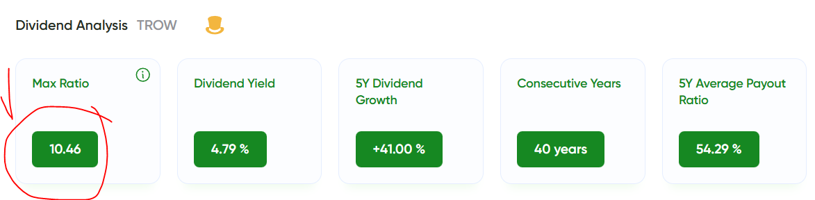 Finally, I look at growth through MaxRatio. I aim for 8 or higher, with 10+ preferred. I want dividends that don’t just pay today, but grow fast enough to stay ahead over time.