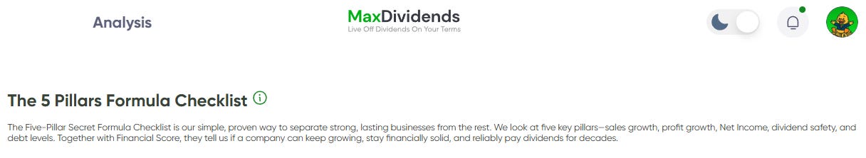 Before we go any further, let me show you how this system works in real life — using one real company as an example. This isn’t theory or a model portfolio. This is the exact framework I use myself, and it’s the same MaxDividends Income System that’s available to you.