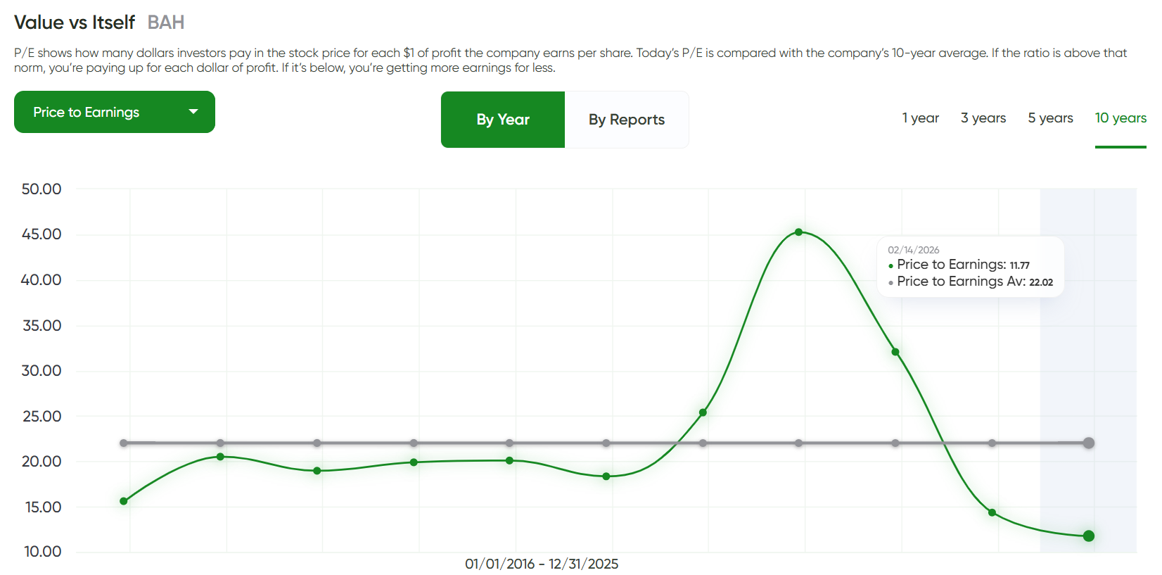 Current P/E < 10 Years Company Av. P/E? - Yes ✅
