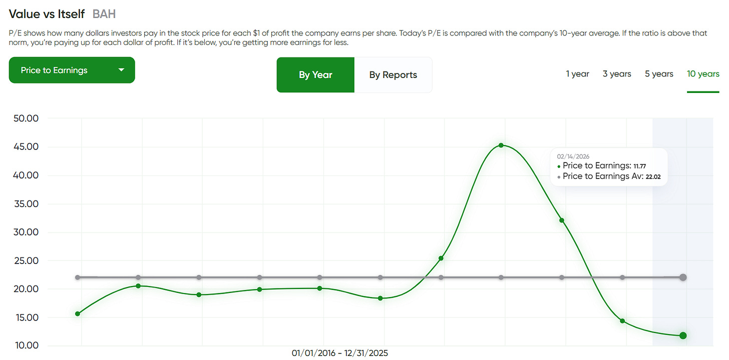 It’s less ideal if we need a business that is fully diversified across customers and has minimal policy/budget exposure. With BAH, we accept that the customer base is concentrated — and we size the position accordingly.