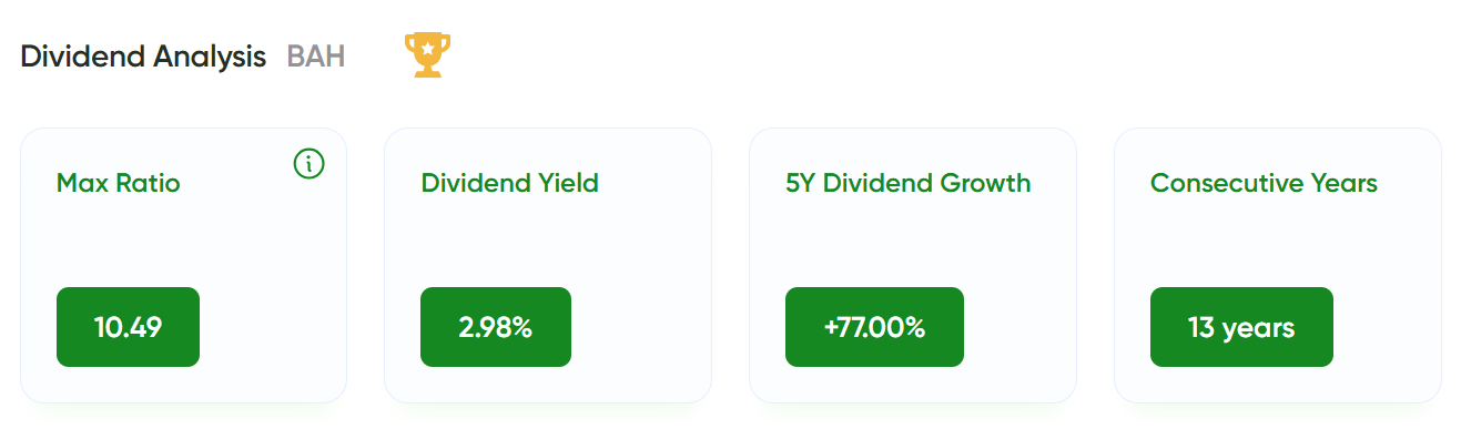 Booz Allen Hamilton currently offers a dividend yield of approximately 2.98%. Dividend payments have increased consistently for 13 consecutive years, reflecting a structured and earnings-supported payout policy.