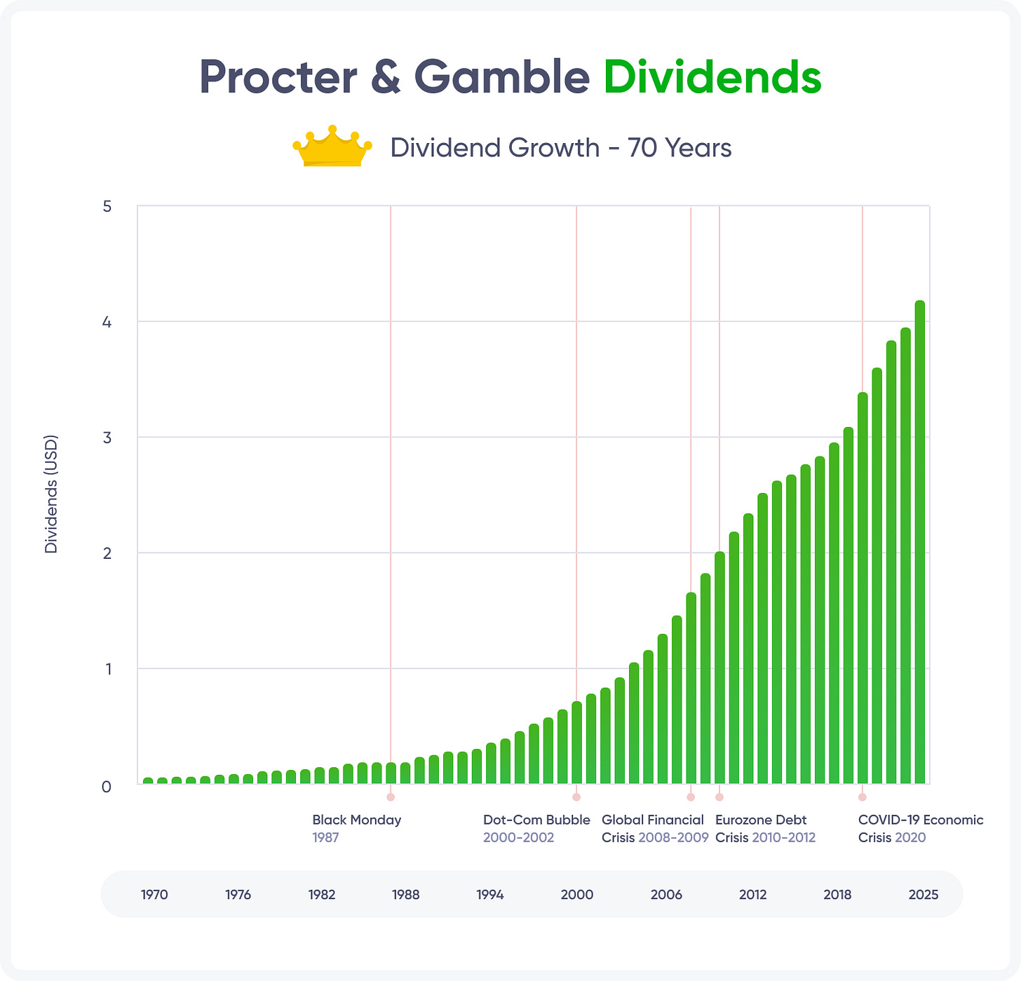 This extended stretch of dividend growth underscores P&G’s commitment to returning cash to investors and reflects its ability to generate stable cash flow across economic cycles.