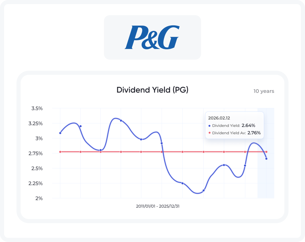 🟢 The current dividend yield of Procter & Gamble stands at 2.64%, closely aligned with its 10-year average of 2.76%.