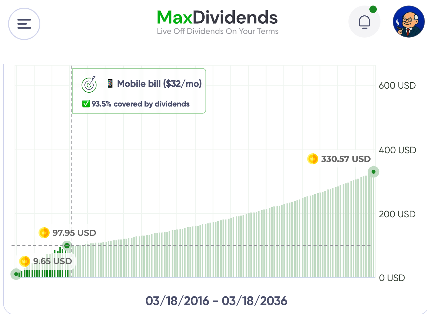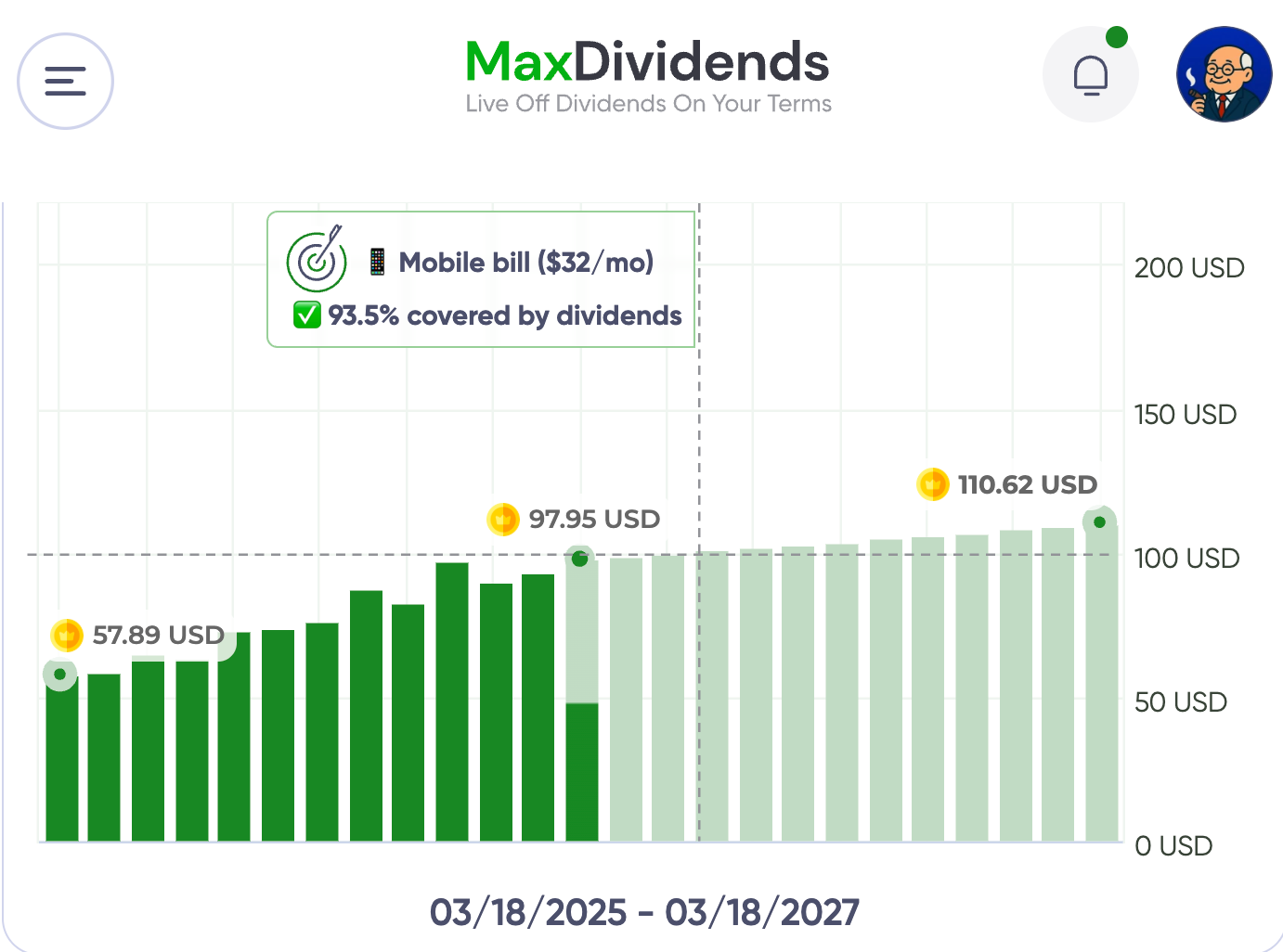 2️⃣ Download the MaxDividends App. The Assistant builds you a ready-to-go dividend plan and tracks progress toward covering real bills.