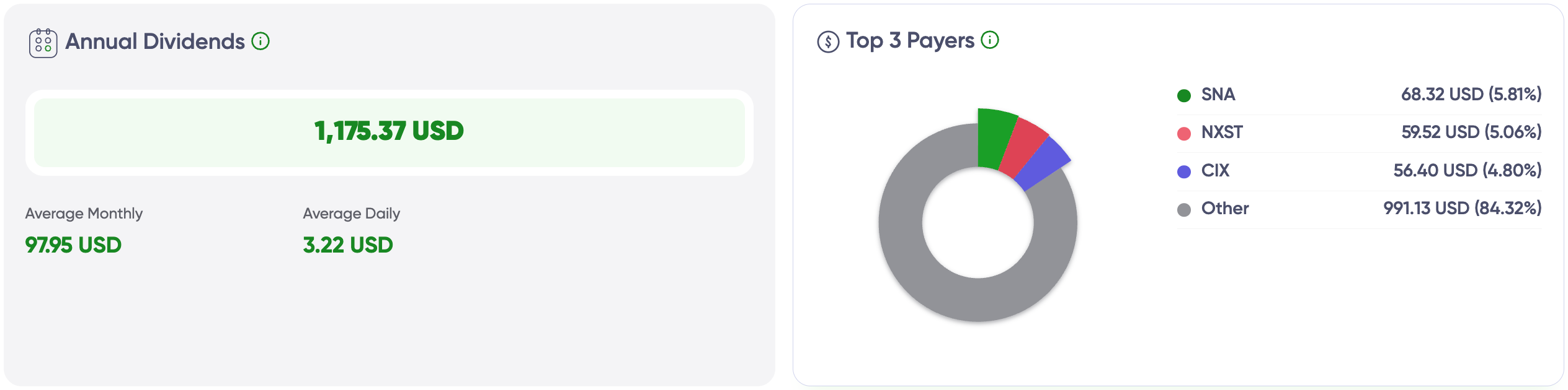 👉 $1,175 a year already working for us. Big names pay more, but the whole portfolio delivers.