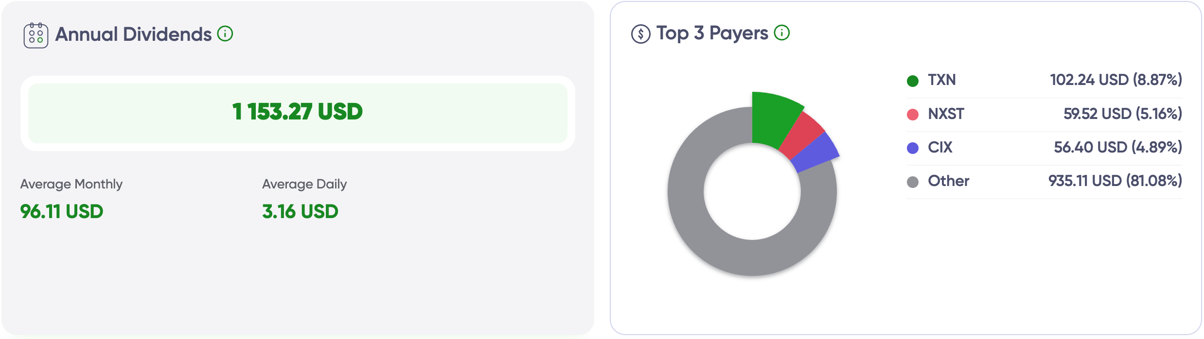 ($1,153.27 annually, top 3 dividend payers)