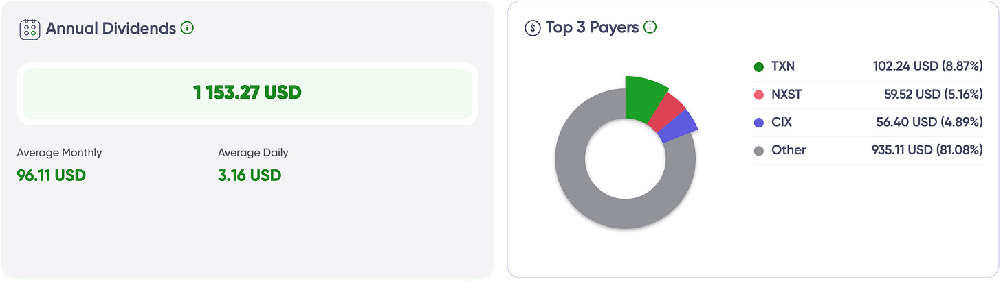 👉 $1,153 a year already working for us. Big names pay more, but the whole portfolio delivers.