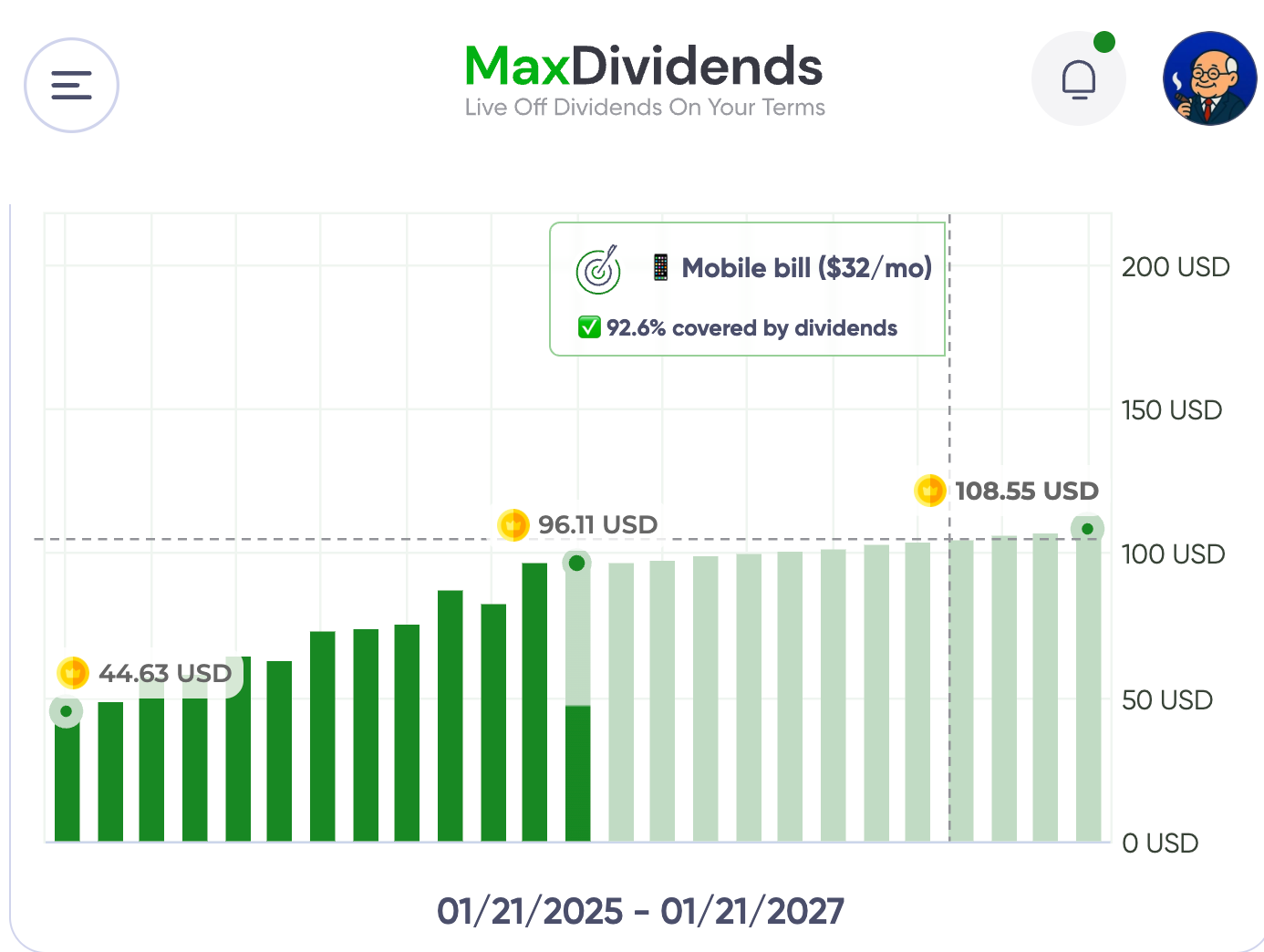 2️⃣ Download the MaxDividends App. The Assistant builds you a ready-to-go dividend plan and tracks progress toward covering real bills.
