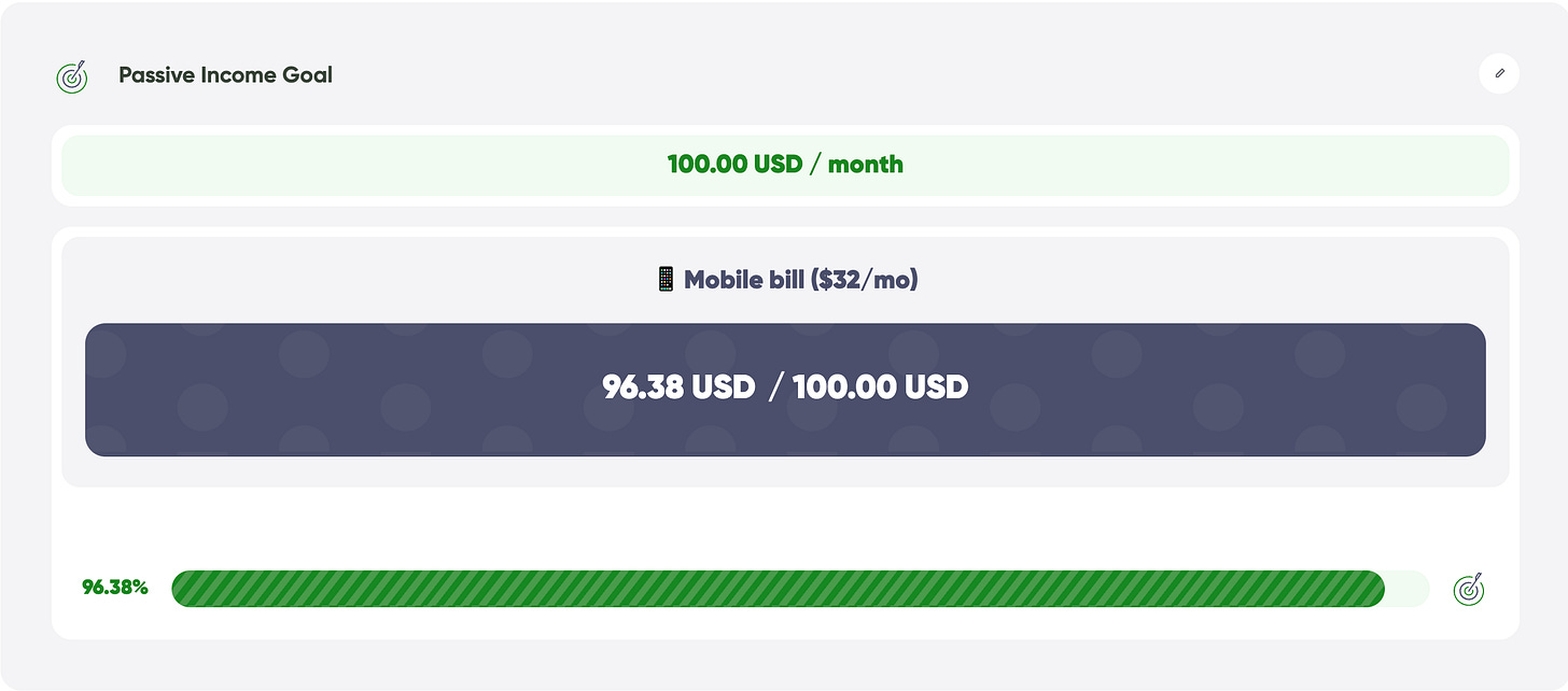 Roadmap to Living on Dividends. Week 80: 🎯 Mobile bill ($32/mo) – now 72.83% covered