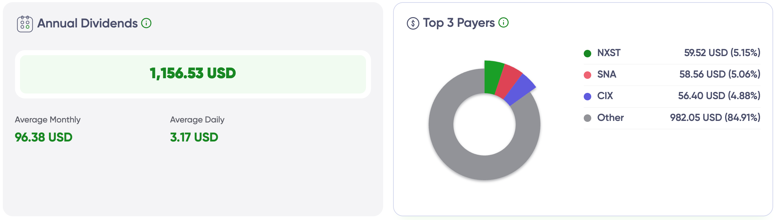 ($1,156.53 annually, top 3 dividend payers)