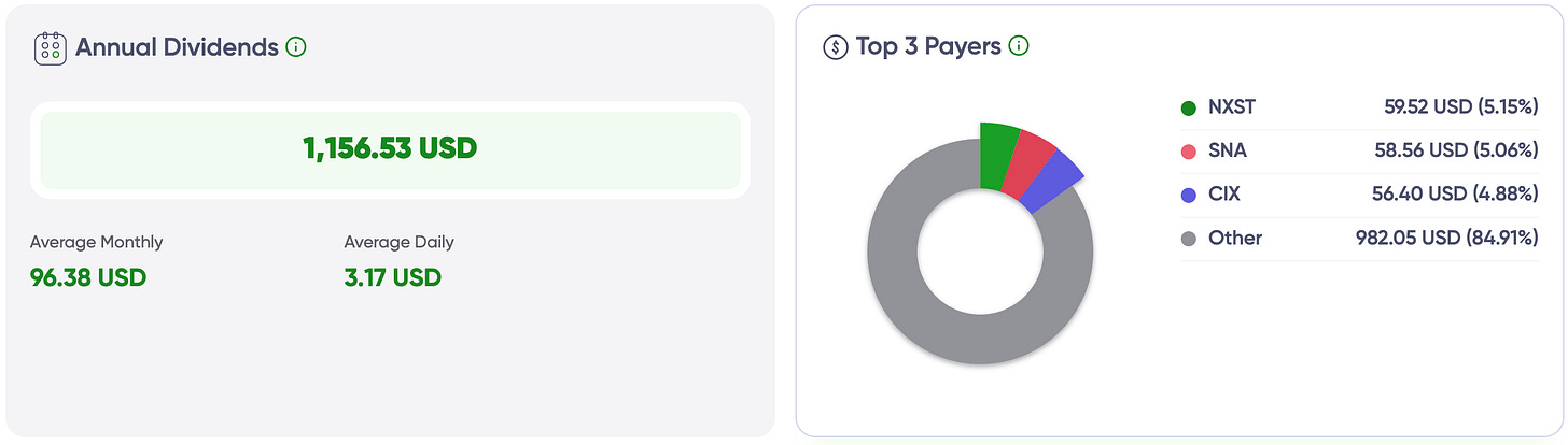 👉 $1,156 a year already working for us. Big names pay more, but the whole portfolio delivers.