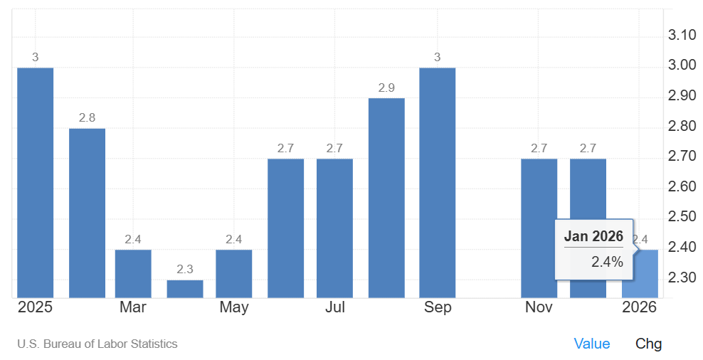 As of January 2026, inflation stands at 2.4%, marking a further decline from late-summer highs and bringing price growth closer to the mid-2% range.
