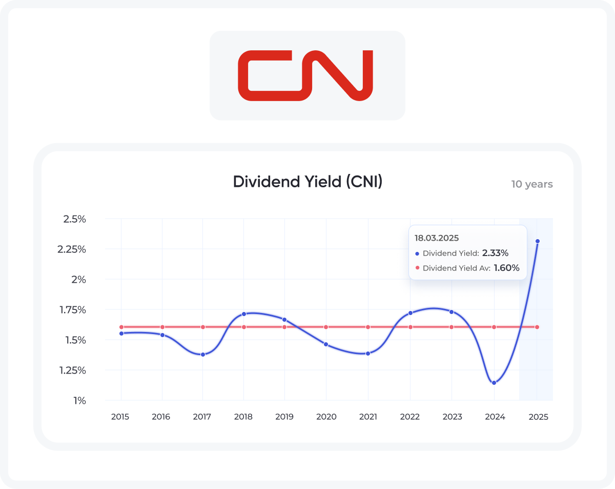 Today, Canadian National Railway’s dividend yield sits at 2.55%, its highest level ever outside of the 2008 financial crisis.