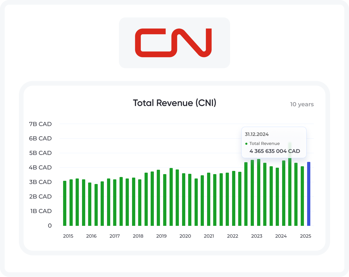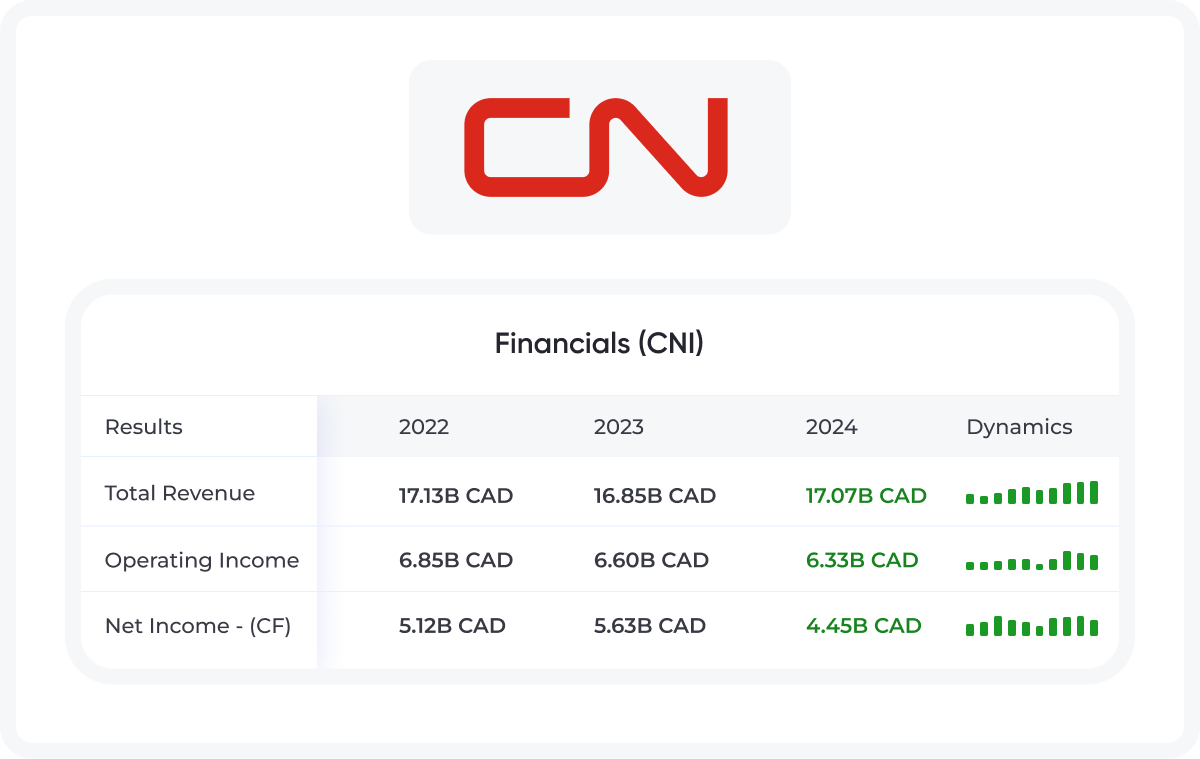 As one of North America’s leading railroads, Canadian National Railway operates a wide-moat business with steady, long-term demand. The company’s 18,800 miles of rail across Canada and the U.S. transport essential goods like petroleum, chemicals, grain, and other commodities.